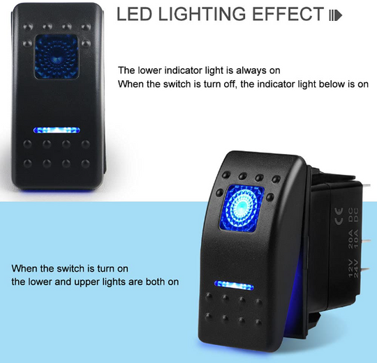 Product Name: 12V LED Rocker Switch; Type : ON-OFF (SPST); LED Rocker Switch On-Off Control Rating: 12V 20ASpecial attention: Light only connect to 12V,Can light up ;Total Size(Each) : 22.5 x 22.5 x 30mm/ 0.88" x...Regular price $10.99 -