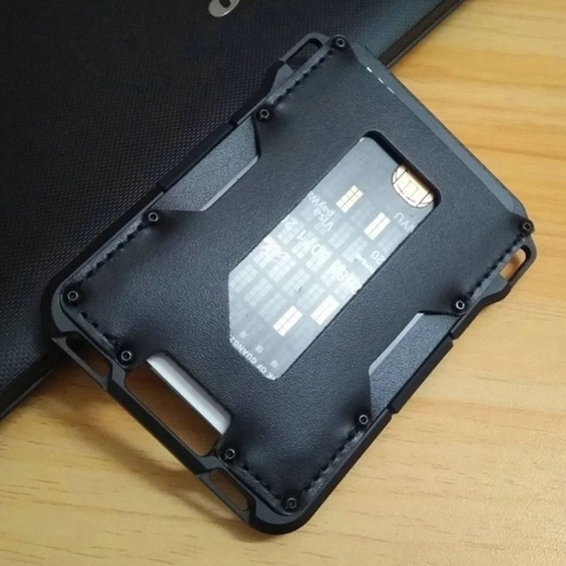Tactical Minimalist Wallet Slim RFID-Blocking Metal Card Holder Leather Dapper B