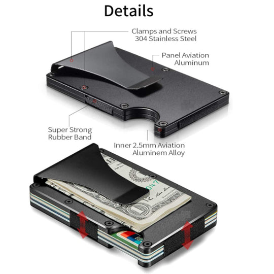 Men's Wallet Aluminum Slim RFID Card Holder with AirTag Holder on Clip