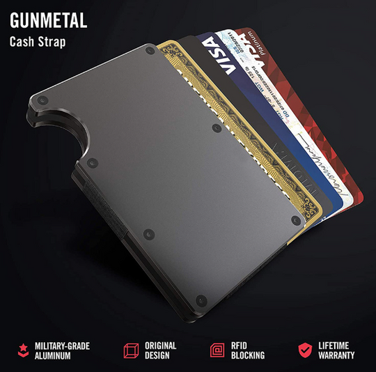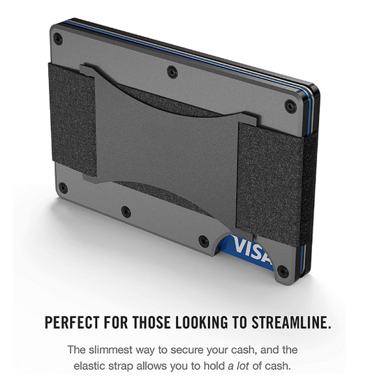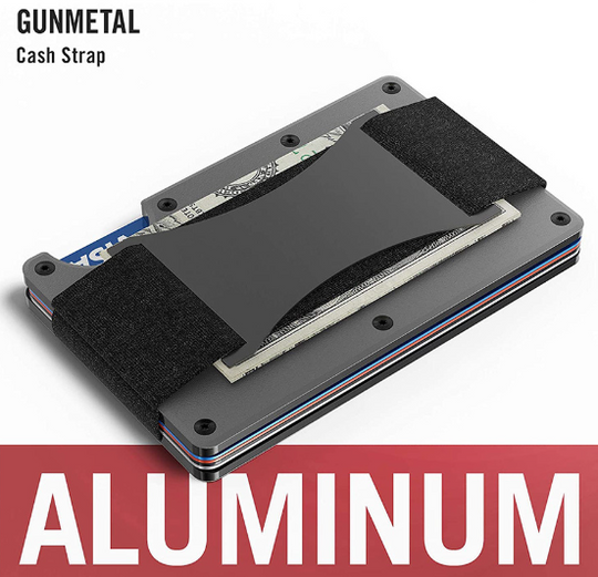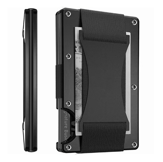Slim RFID Wallet Minimalist Holds up to 12 Cards Aluminum Wallet With Cash Strap