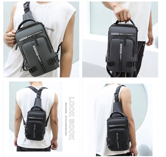 Water Proof Multi-Pockets Multifunction Backpack Bag Chest Bag,Grey