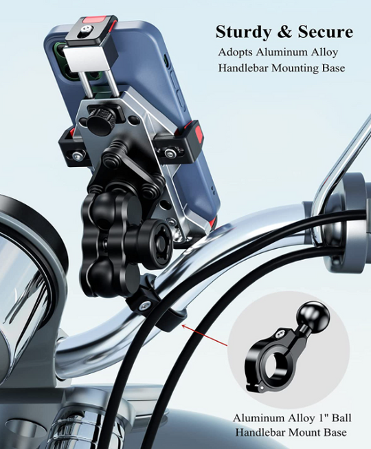 The motorcycle handlebar cell phone holder adopts one-push automatically lock and quick release design. Put in or take out your phone with just one hand in one second, very convenient. 720 degree free rotation design, can...Regular price $129.99