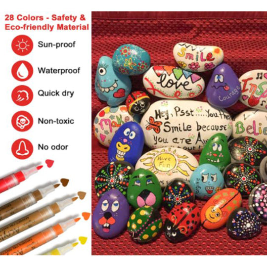 Acrylic Paint Marker Pens - Set of 28 Colors Water Based
