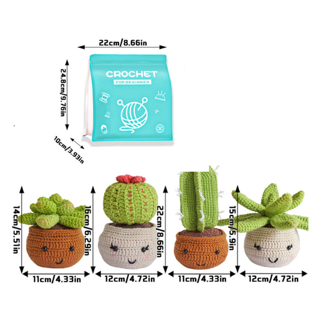 Beginner's Handmade DIY Crochet Kits Wool Flowers Potted Plants 4pcs cactus