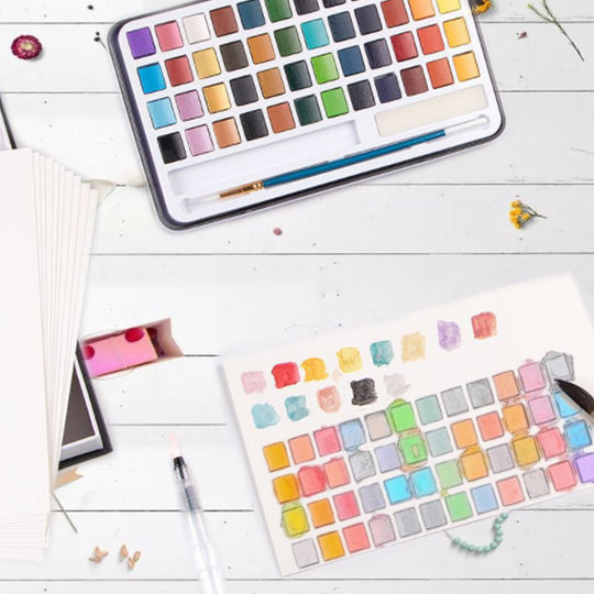 water color set including 12 Premium Metallic Colors and 36 vivid colors, 10 sheets of watercolor paper, 1 hook line pen, 2 water brush pens, 1 pen brush. Lightweight and portable watercolor set making it very...Regular price $38.99 -