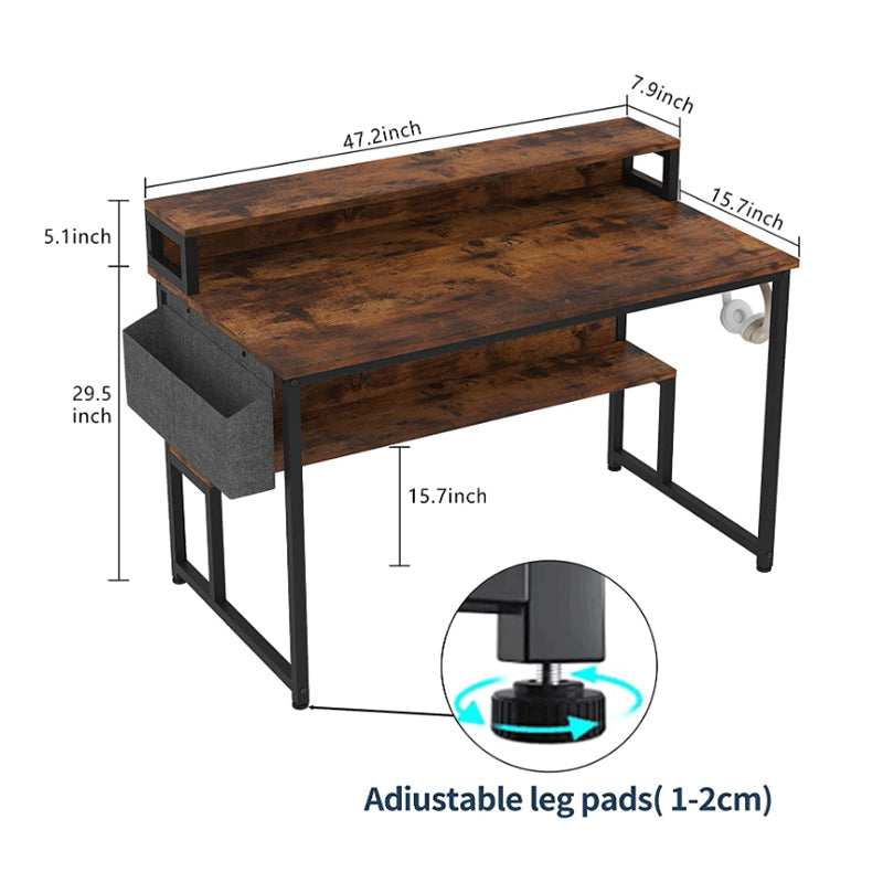 Metal frame with several desk boards ensure stability and durability, adjustable leg pads provide greater stability, ensuring you to enjoy your work on this desk.