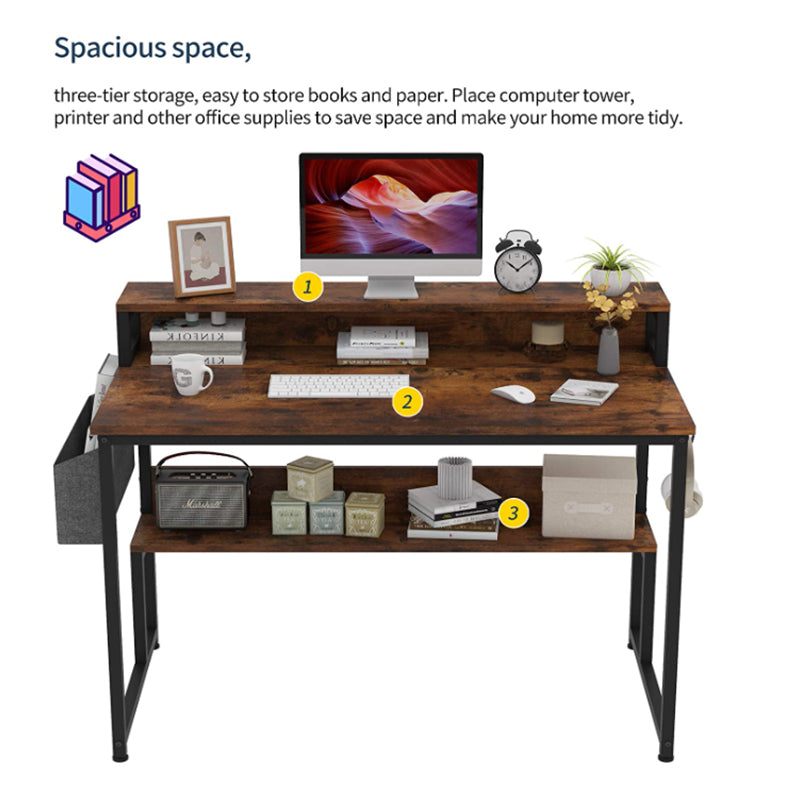 The top shelves design expertly make your desktop tidier and helps you head up when you put your screen on it. The bottom bookshelf design offers ample storage space for books, files, and other office home supplies.