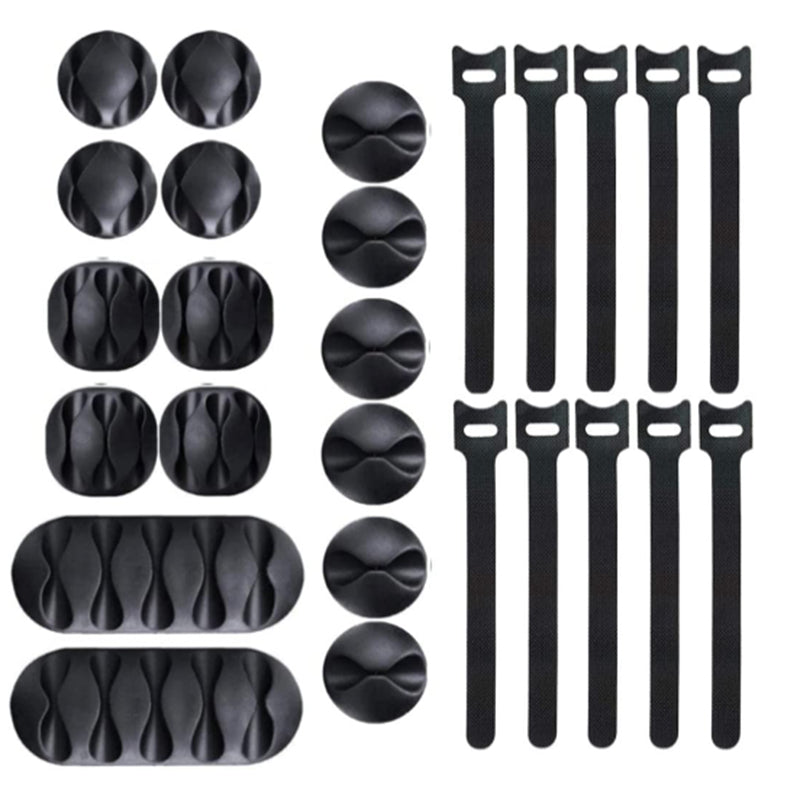 Come with 16-pack different size black cable clip holders, more size for all family member and 10 pcs Wire Fastening Ties