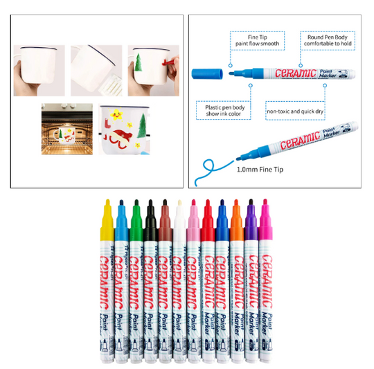 12 colours paint makers for painting on ceramic, glass, canvas, rock stone, pottery etc. Water based, non-toxic and dries fast, no need to wait before applying another layer of paint. 1.0mm fine tip can be precisely...