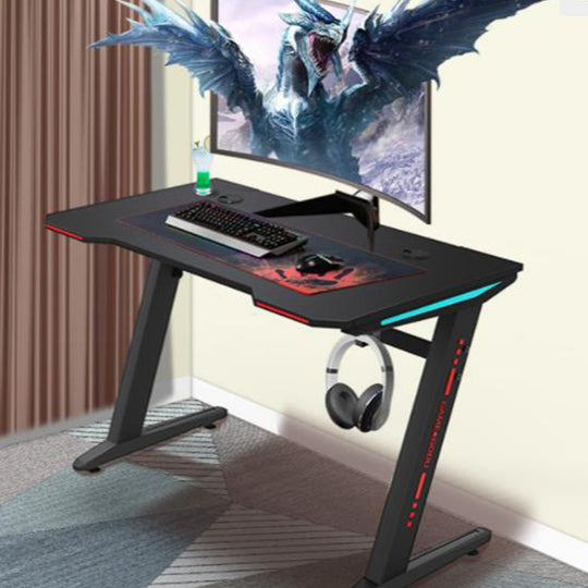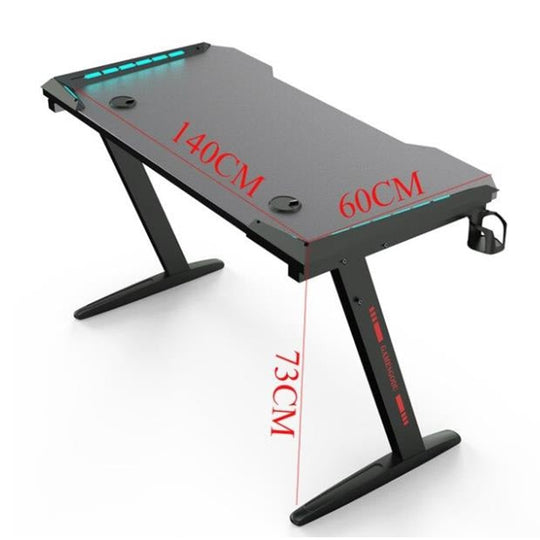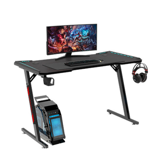 Gaming Desk Z shape with LED RGB Lights Headphone Hook and Cup Holder
