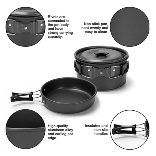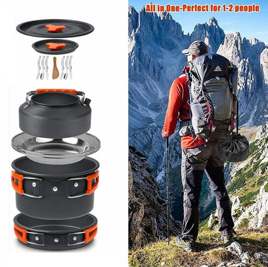 Camping Cookware Kit Aluminum Cooking Pots Water Kettle Pans Set with Stove Kettle