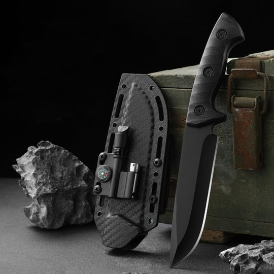 Fixed Blade Knife with Kydex Sheath for Carries with Fire Starter, Compass, Whistle