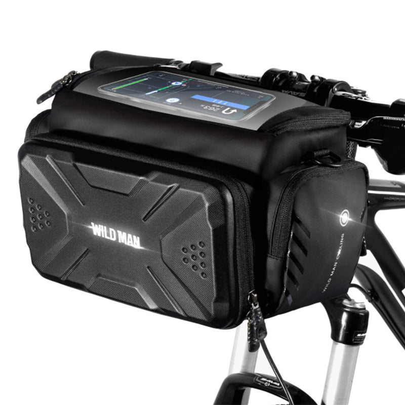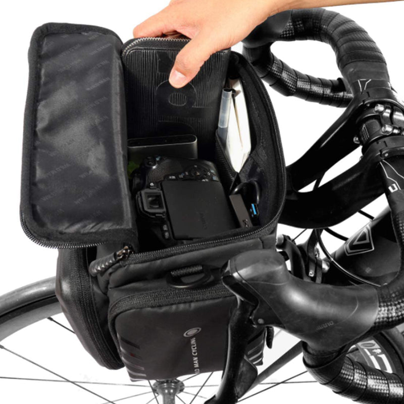 Large capacity 4L, classified pocket storage design, keep things from moving around and damage to valuables such as cell phones; You can easily carry small items such as your keys, glasses, smartphones, wallet, mini pump and other repair kit etc; Large size design of mobile phone bag, compatible with most mobile phones; The clamp bracket compatible with most handlebars of road bikes and MTB, with anti-skid pads.