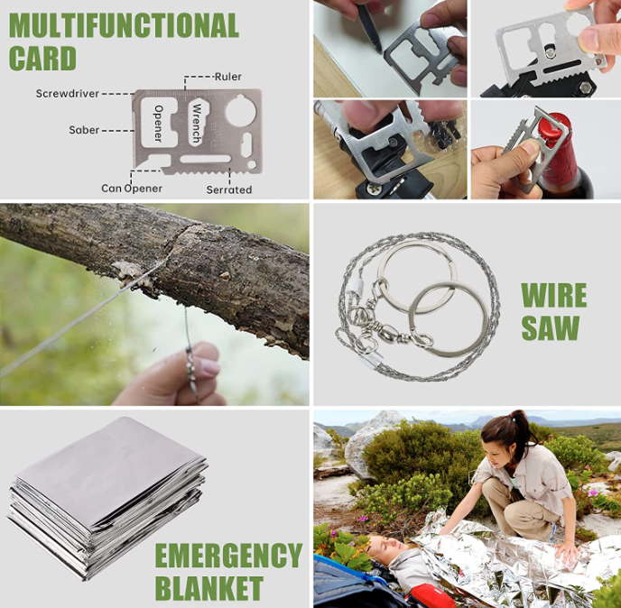 Emergency Survival Kit is necessary in your camping, hiking, hunting, fishing, backpacking, adventures, and emergency situations