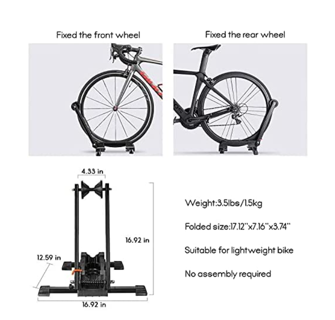 Foldable & Portable&Save Space: A simple one-pull-knob will allow to fold the stand into a flat shape, Only 17.12(L) inch x 3.74(H) inch x 7.16(W)inch when folded. Saving storage when not in use or to carry it into the car when going riding. Your bikes will never be lying on the ground or leaning against buildings or trees anymore