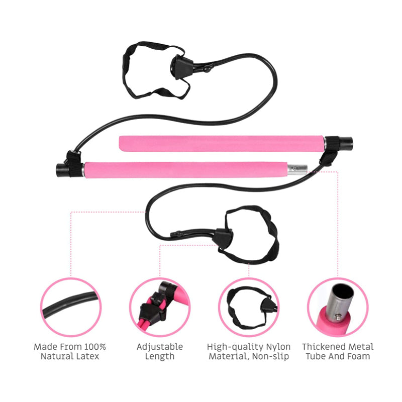 Geared Up Fast: This Pilates bar with adjustable resistance bands is designed for portability. Easy installation and simple steps to get ready for your exercise whenever you want. Adjustable resistance levels according to your requirements. Durable and highly strength resistance bands for all kinds of pressures. It is time to feel your muscle fat burn.