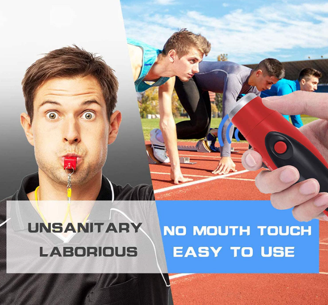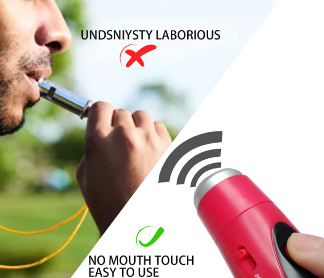 Compared with traditional whistle, you don’t have to put your mouth on it like a normal whistle, our Electronic Whistles operates with the push of a button. A handheld whistle helps your voice at recess without blowing but also send louder, strong and consistent sound compared with traditional whistles.