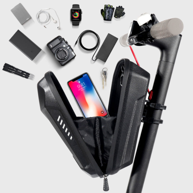 It only needs to be tied with a cable tie. If you need to remove the bag, you can remove it with just one tap. Suit For Kick Scooters, Stunt Scooters, Self Balancing Scooters, Folding Bikes etc