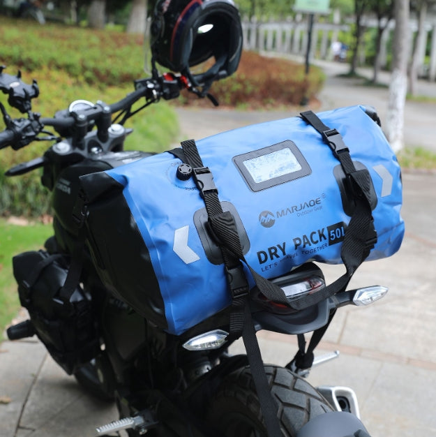 Our waterproof Motorcycle bag is crafted from 500D PVC waterproof fabric, providing rainstorm-level waterproofing, ensuring you stay dry even in adverse weather conditions. Seamlessly constructed, it's durable, and waterproof.
