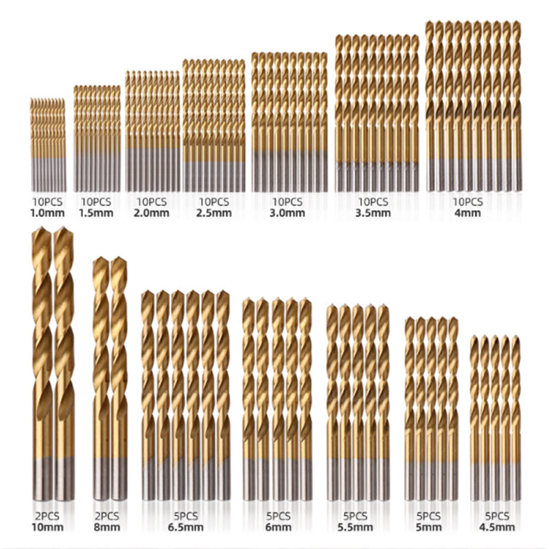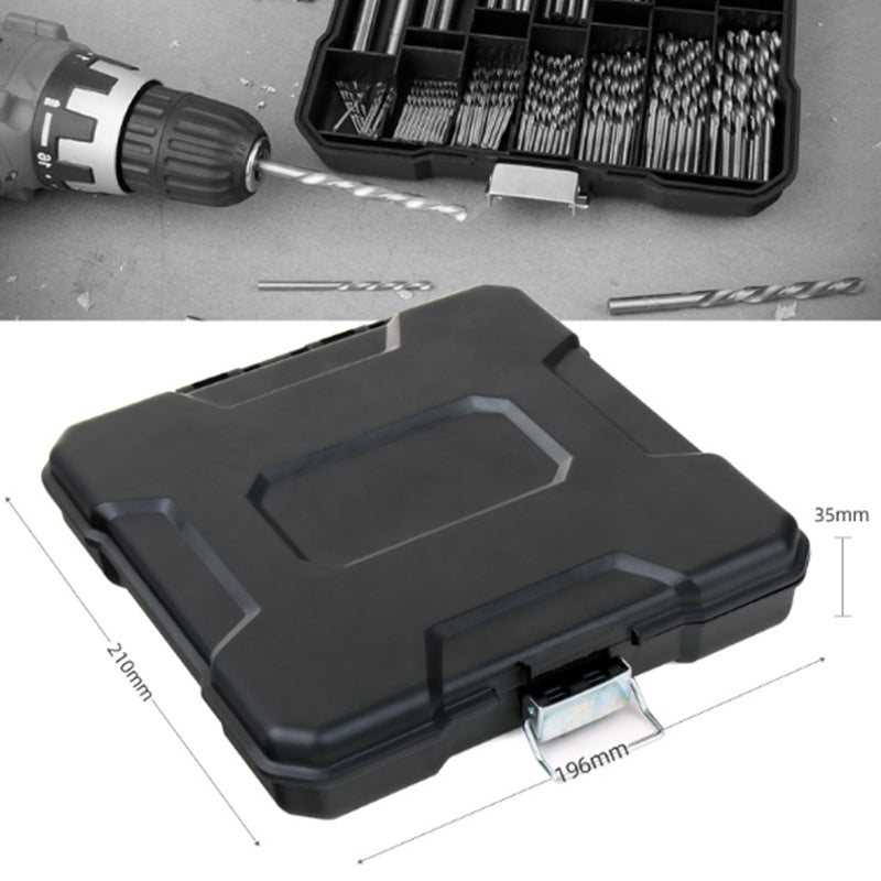 100-piece foreman drill set with plastic storage box, including size: from 3/64 inch to 1/2 inch. Perfect to meet your different needs.