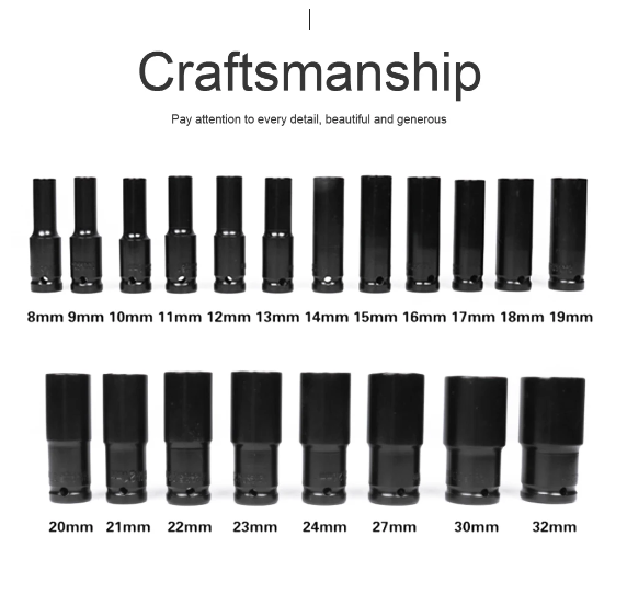 Longer use time - high-strength impact grade 45# steel sleeve can withstand greater torque of impact tools to ensure service life. High quality black oxide finish provides maximum protection against rust and corrosion.