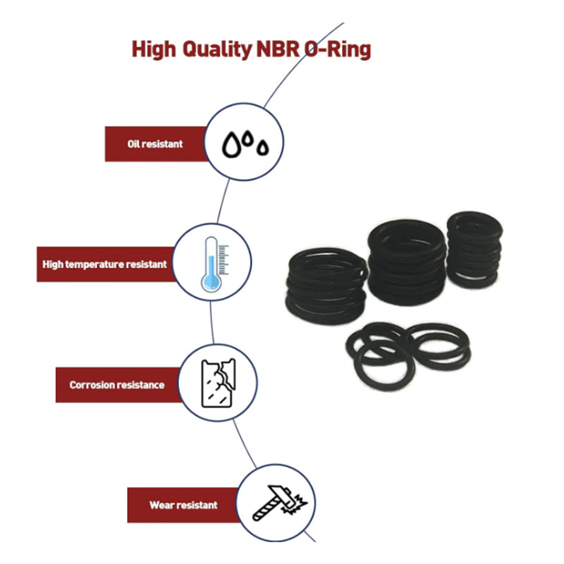 Every piece of our O-ring kit is made of top nitrile rubber, heat-resistant, low-temperature/high-temperature resistant, air, water, petroleum products, mineral oil and hydraulic oil, natural gas, kerosene, silicone oil, Non-aromatic fuels and solvents, provide long-lasting and reliable service.