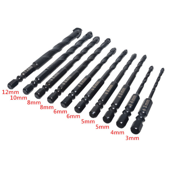 10-Piece Glass Concrete Drill Bit Set or Brick 1/4 double R groove hex handle