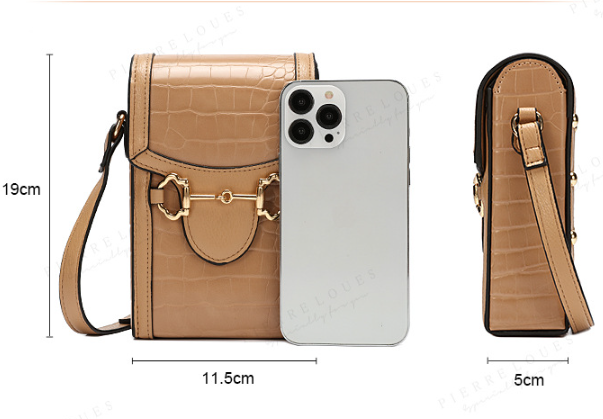 Crossbody phone bag (L) 12cm*(W) 6cm*(H) 120cm, shoulder strap length 43cm to 54cm. easy to carry, large capacity and not easily deformed, can hold mobile phones, cash, cards, tickets, passports, keys, cosmetics, sunglasses and other daily necessities.