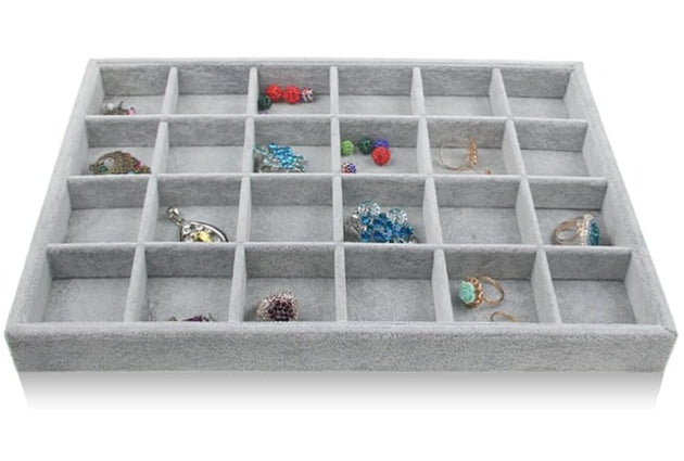 Grey Velvet 24 Compartment Jewelry Display Showcase Organizer Holder