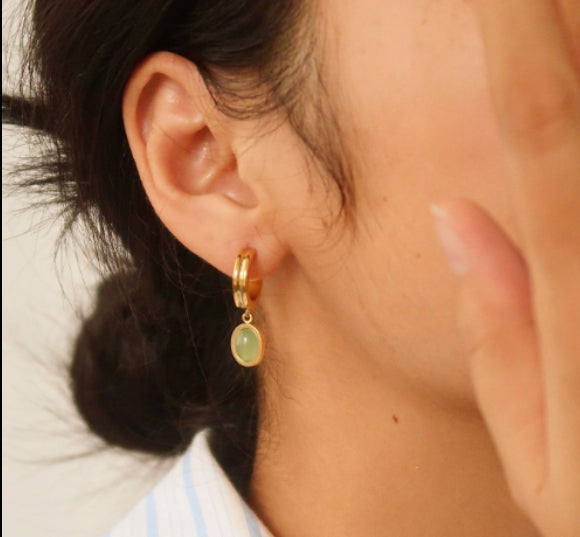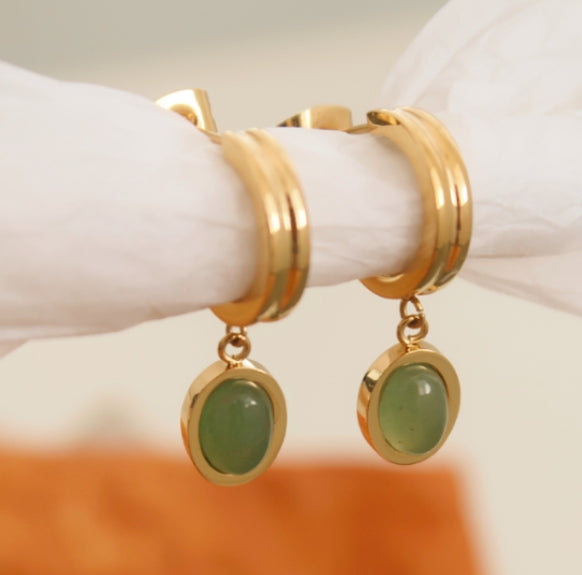Green gemstone Gold-plated titanium steel Drop Earrings