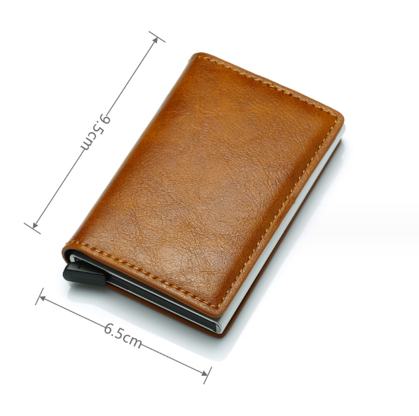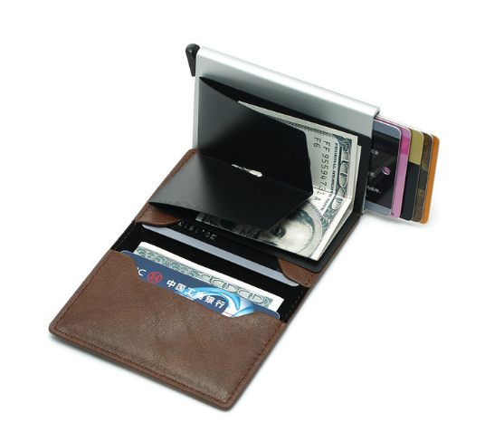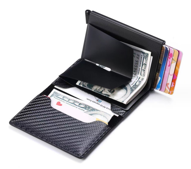 Our card ejection mechanism makes it easy to access cards on the go; Seamlessly remove the wallet's contents without ever fumbling through them; With the push of a button, get to the most important parts of your wallet on the go