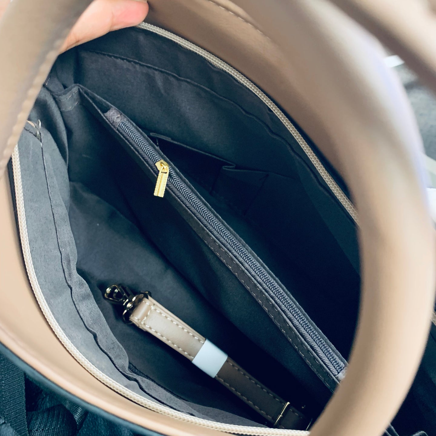 *Structure: Two main compartments, a middle zipper pocket, two small side pockets and one zipper side pocket, one back zipper pocket can hold your keys or cards.