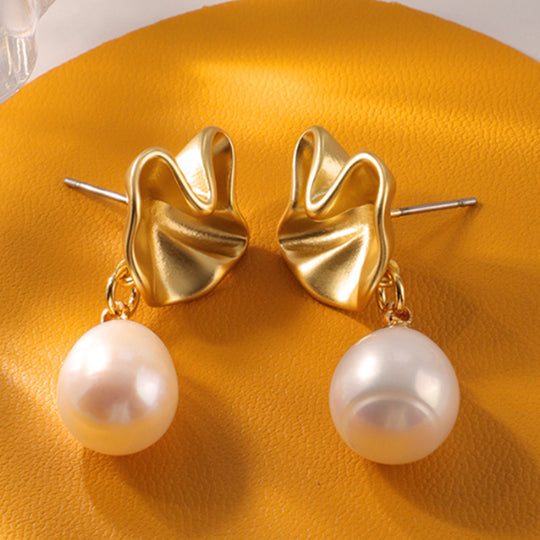 Size: 3cm X1.8cm Natural Water Pearl Earrings It is gold-plated brass with 925 sterling silver earrings pins Sterling silver posts are naturally soft due to the high silver content (just bend 'em back into shape if...Regular price $34.99 -