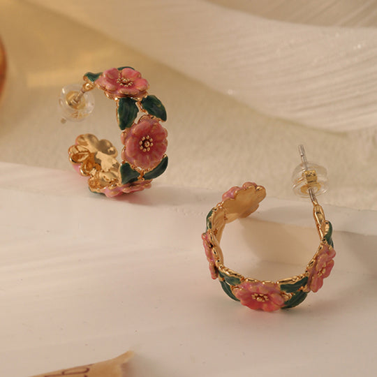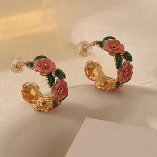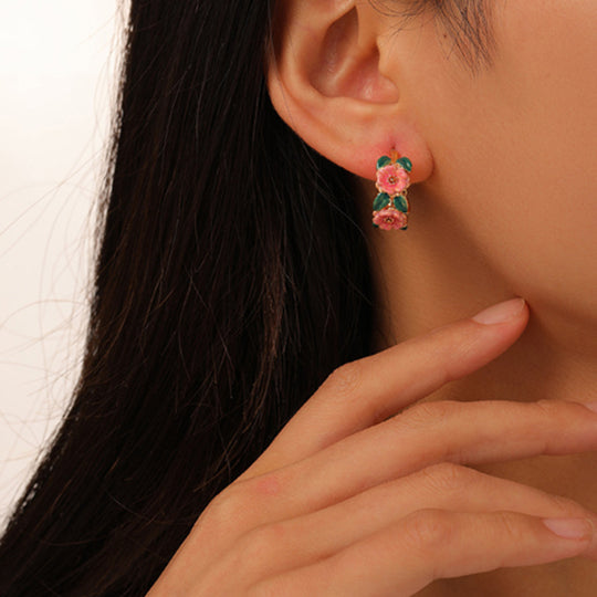 Size: 1.9cm X 1.9cmCamellia Enamel Oil Drop Earrings It is gold-plated brass with 925 sterling silver earrings pinsSterling silver posts are naturally soft due to the high silver content (just bend 'em back into shape if...Regular price $34.99 -