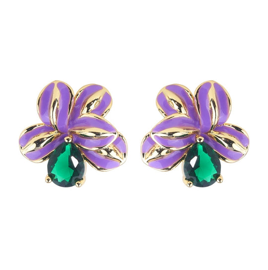 Embellique crystal glass gold-plated brass enamel drop earrings French iris