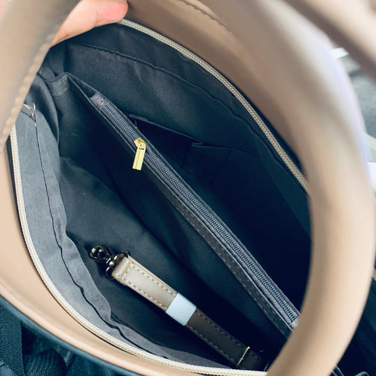 Dimensions:28cm(L) x24cmH) x 12cm (W) Straps: 120cm Handle High:11cm Lining: cotton lining Number of pockets: 2 Compartments +2 Zipper Pocket and 1 slip pocket inside.Regular price $59.99 -