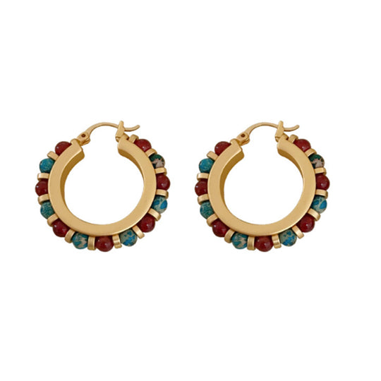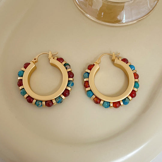 Embellique Natural Stone Beaded Hoop Earrings Red + Blue