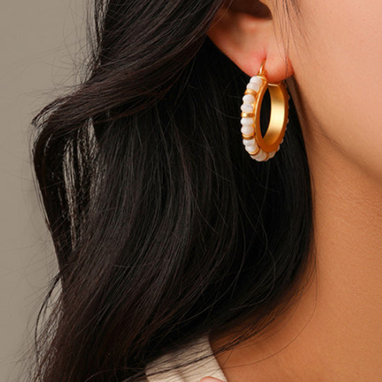 Embellique Titanium Steel Oval Vintage Coloured Glass Earrings