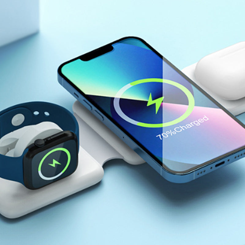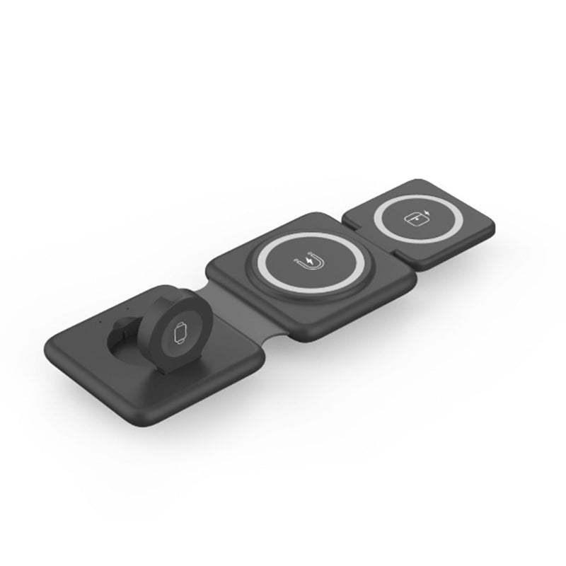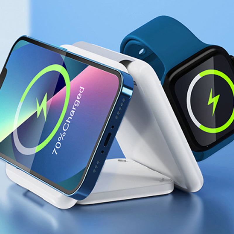 Our foldable charging pad with strong magnetic suction capability ensures a stable connection for your devices. Simply align your phone or watch, and the magnetic attraction securely holds them in place.