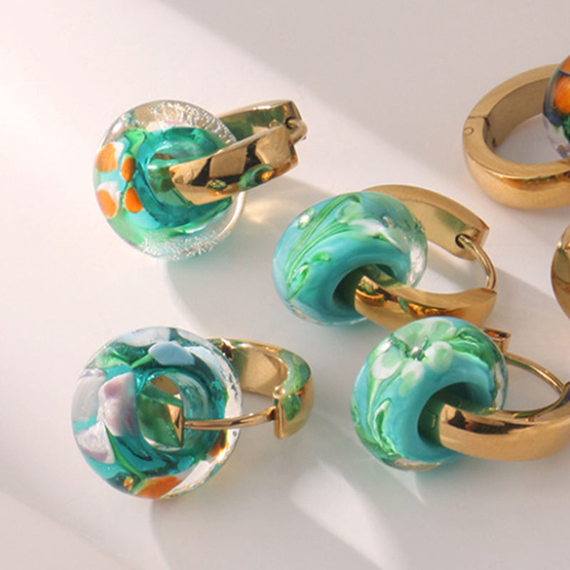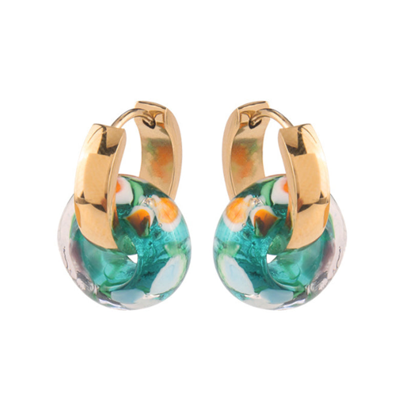 Titanium Steel Oval Vintage Coloured Glass Earrings