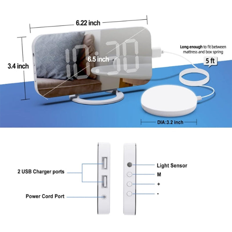 Dual USB Charging and Plug in Digital Alarm Clock:The digital clock equipped with 2 usb charging ports,you can charge your phone,pad and other devices safely and conveniently.