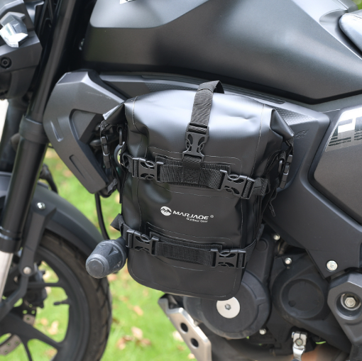 QUICK RELEASE FIXING SYSTEM: 4 quick release fixing points on the bag body to ensure stable fixing with the motorcycle bumper, 1 top buckle and 2 side buckles used in combination to ensure the stability of the contents of the bag.